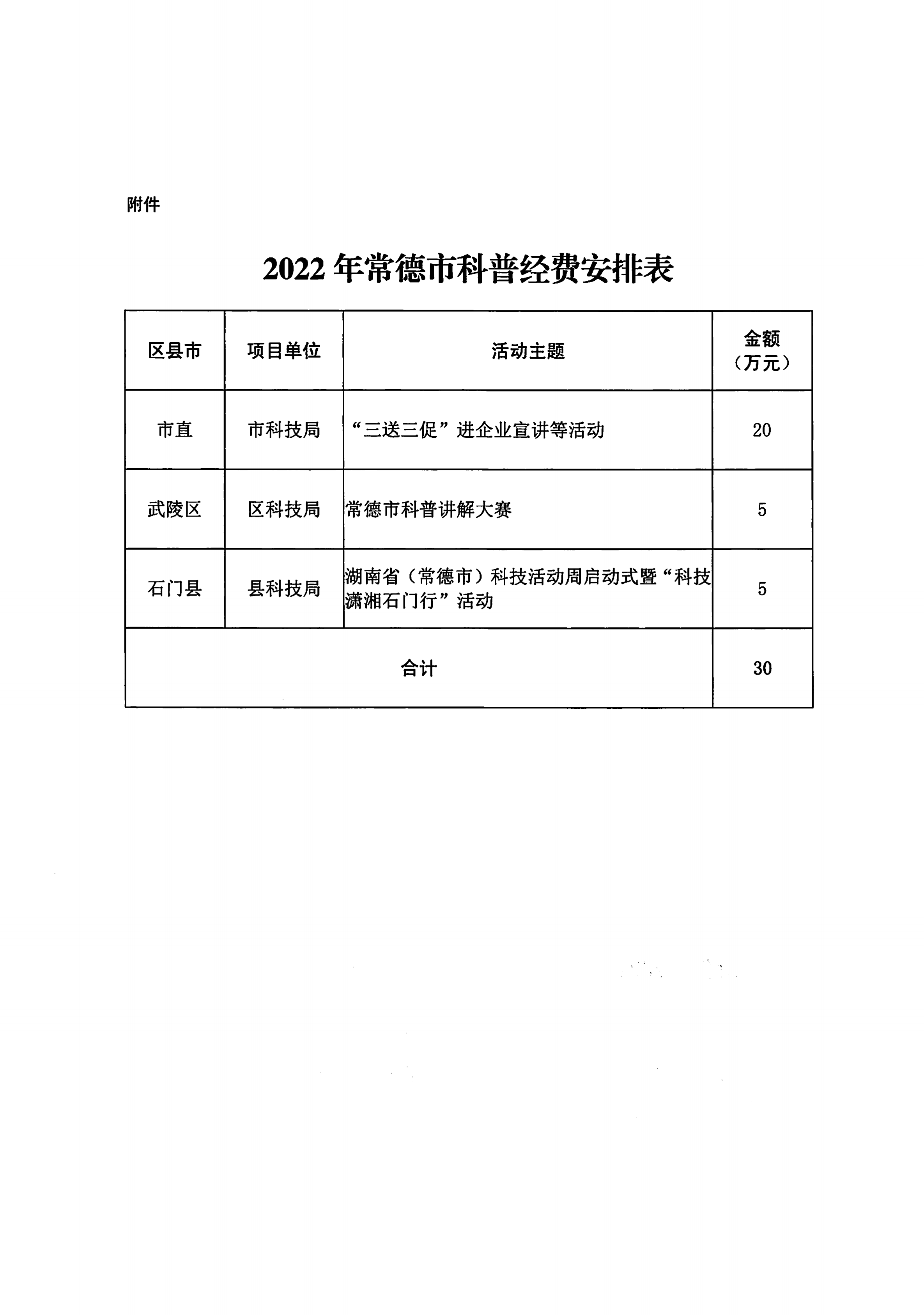 常德市财政局 常德市科学技术局关于下达2022年科技创新发展专项资金(科普经费)的通知