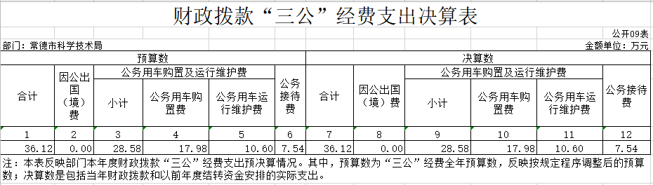 注:1.本表反映部门本年度财政拨款“三公”经费支出预决算情况。其中,预算数为“三公”经费全年预算数,反映按规定程序调整后的预算数;决算数是包括当年财政拨款和以前年度结转资金安排的实际支出。2.注意往年为一般公共预算财政拨款口径,今年为财政拨款口径。