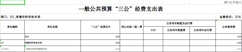 常德市科技情报研究所2025年一般公共预算“三公”经费支出情况表