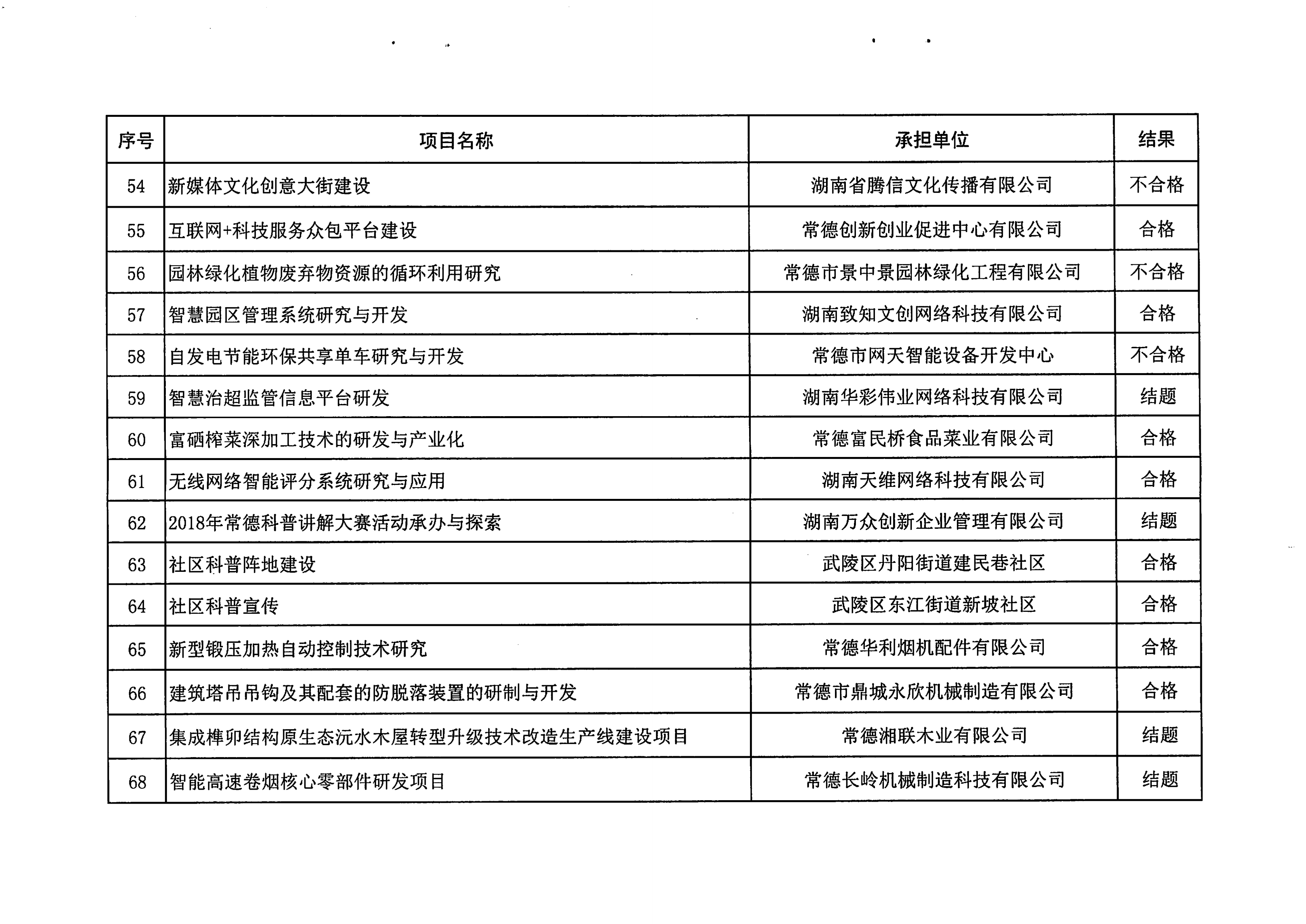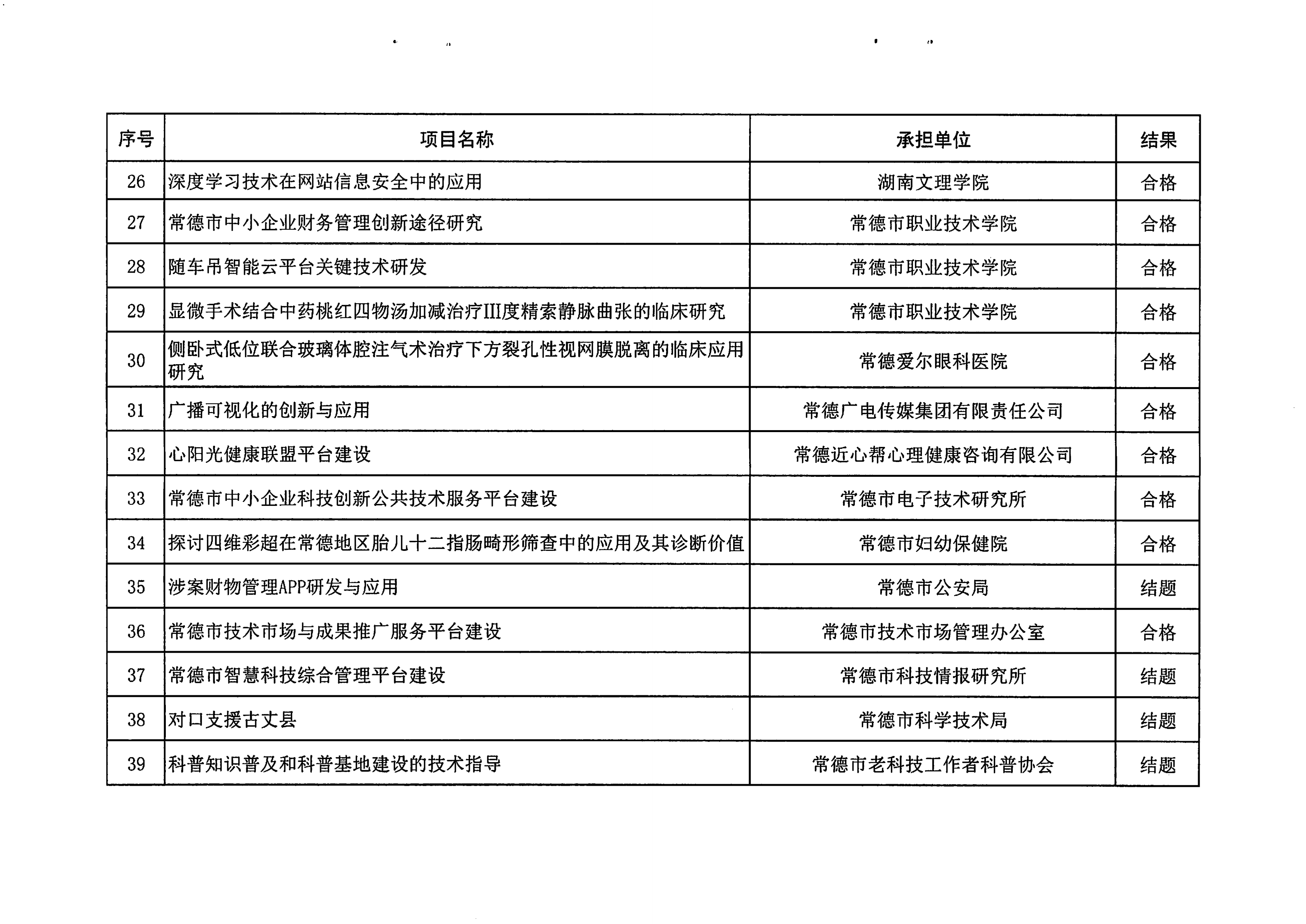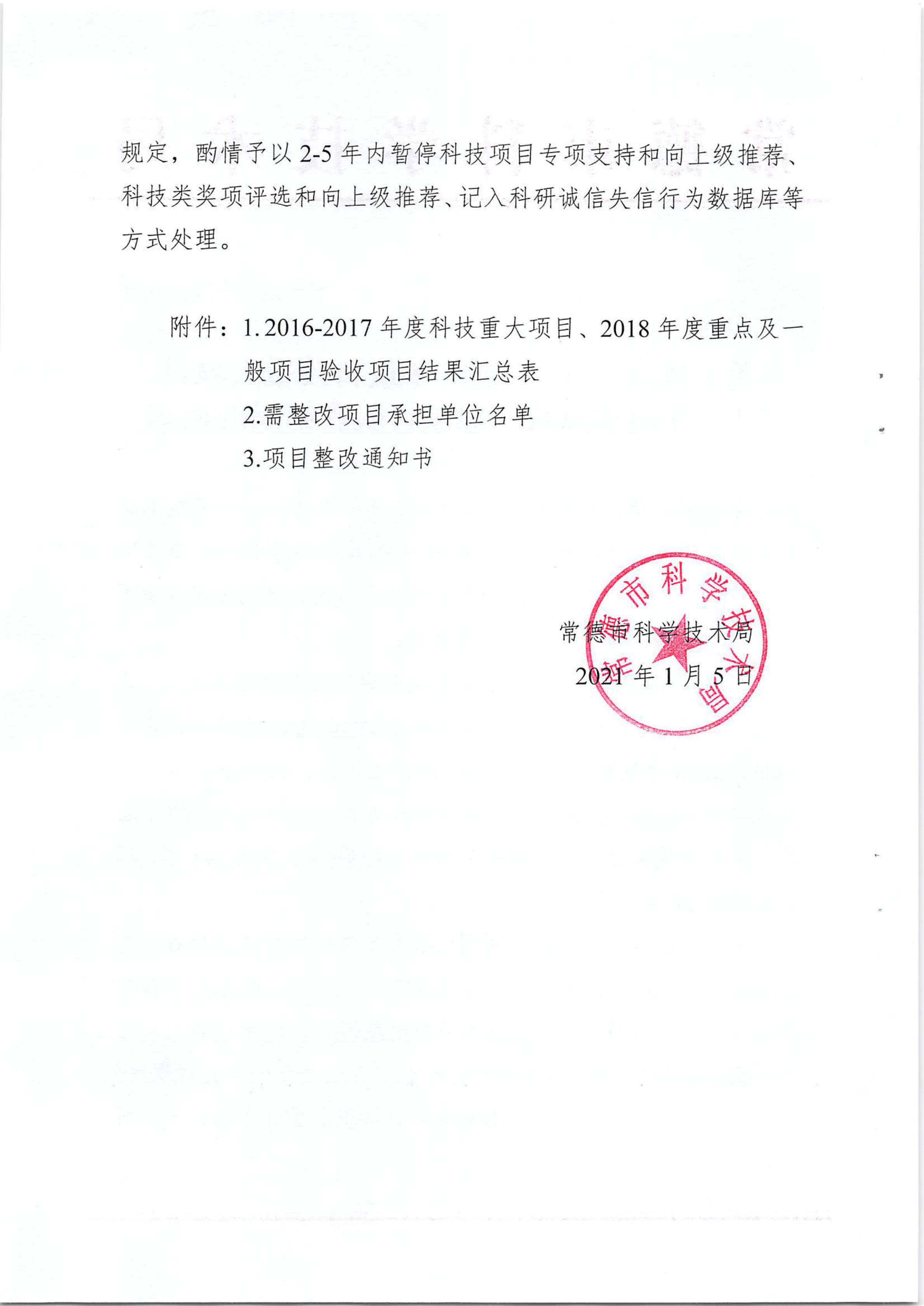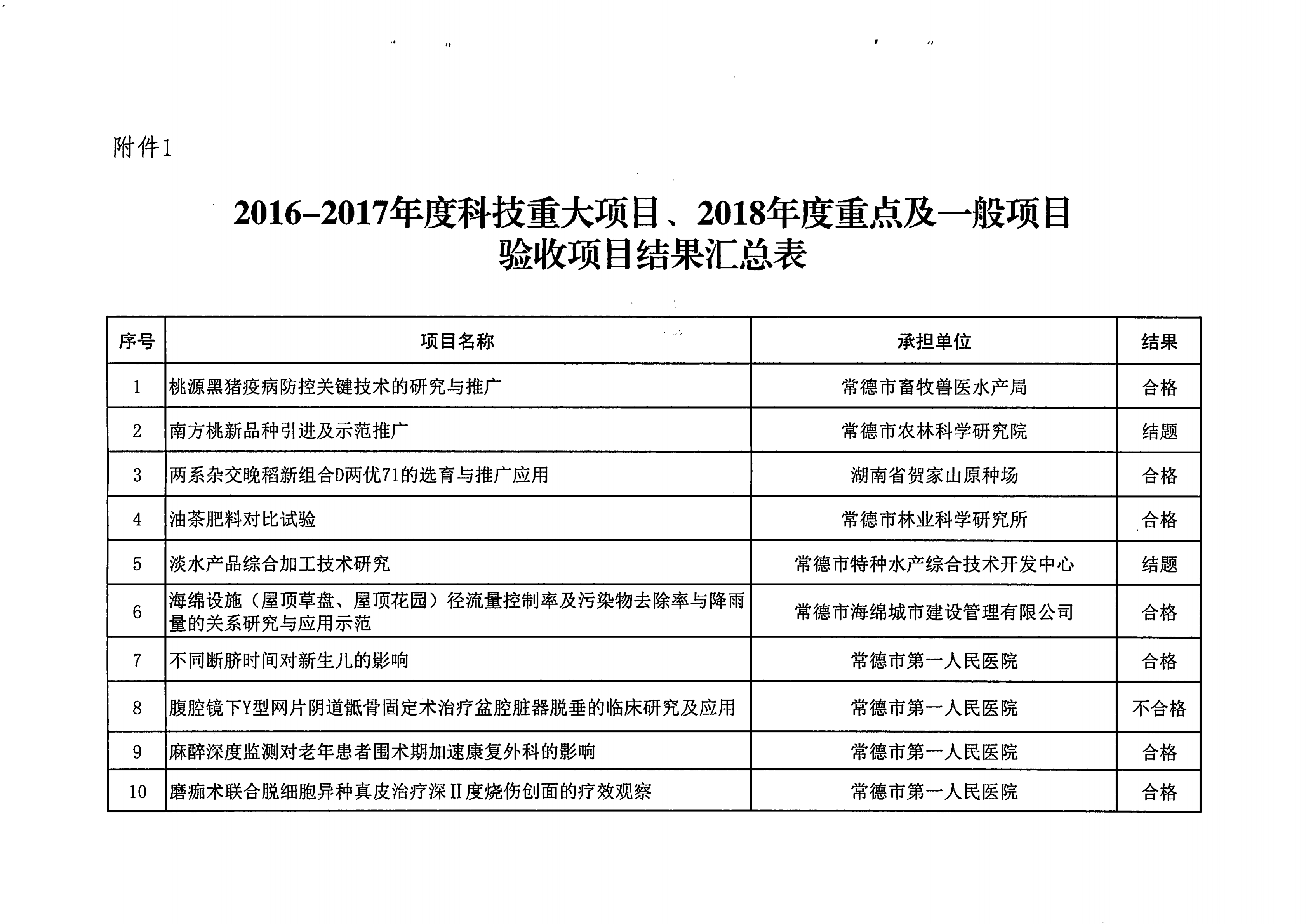 常德市科学技术局关于发布2016-2017年度科技重大项目2018年度重点及一般项目验收结果的通知