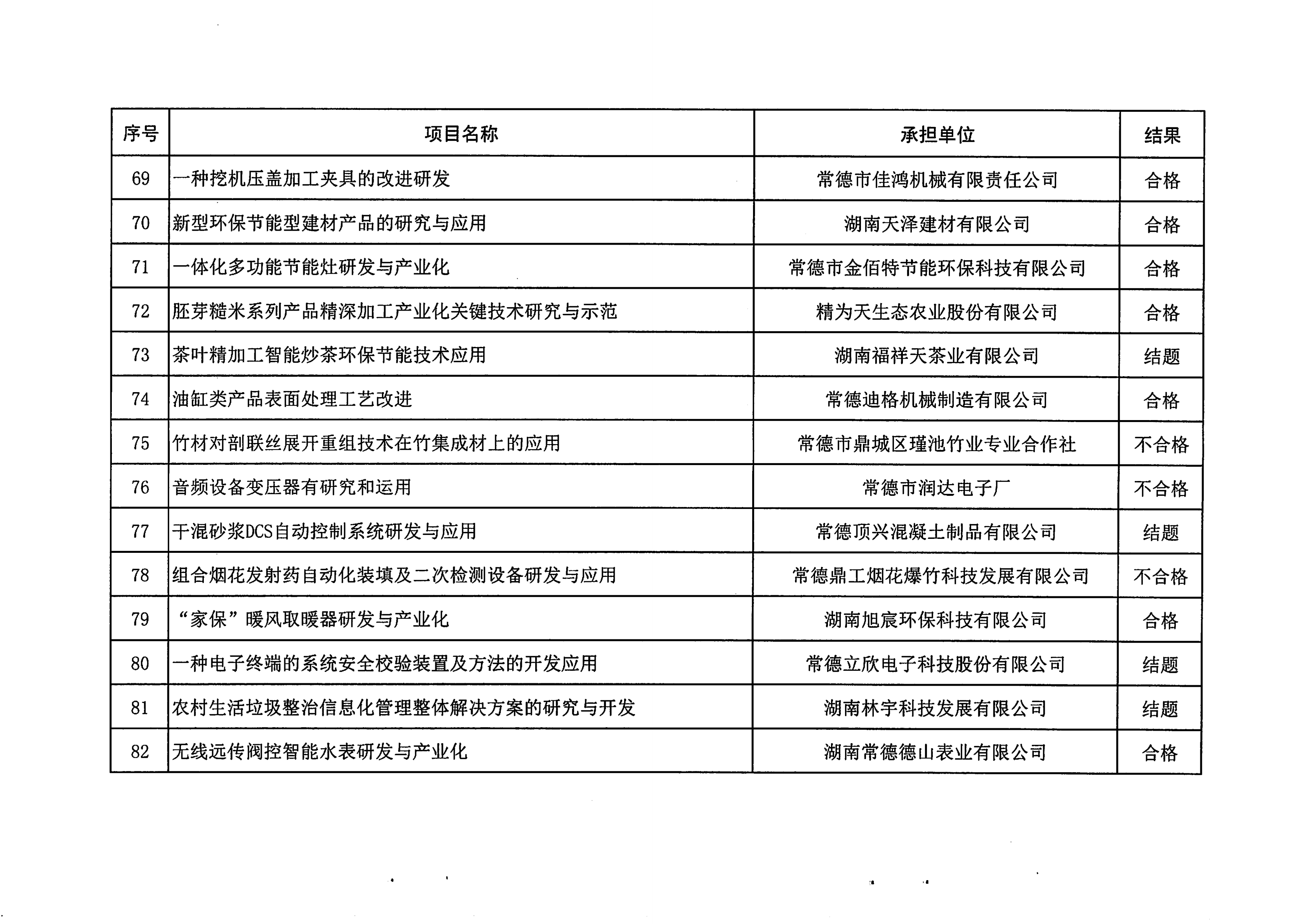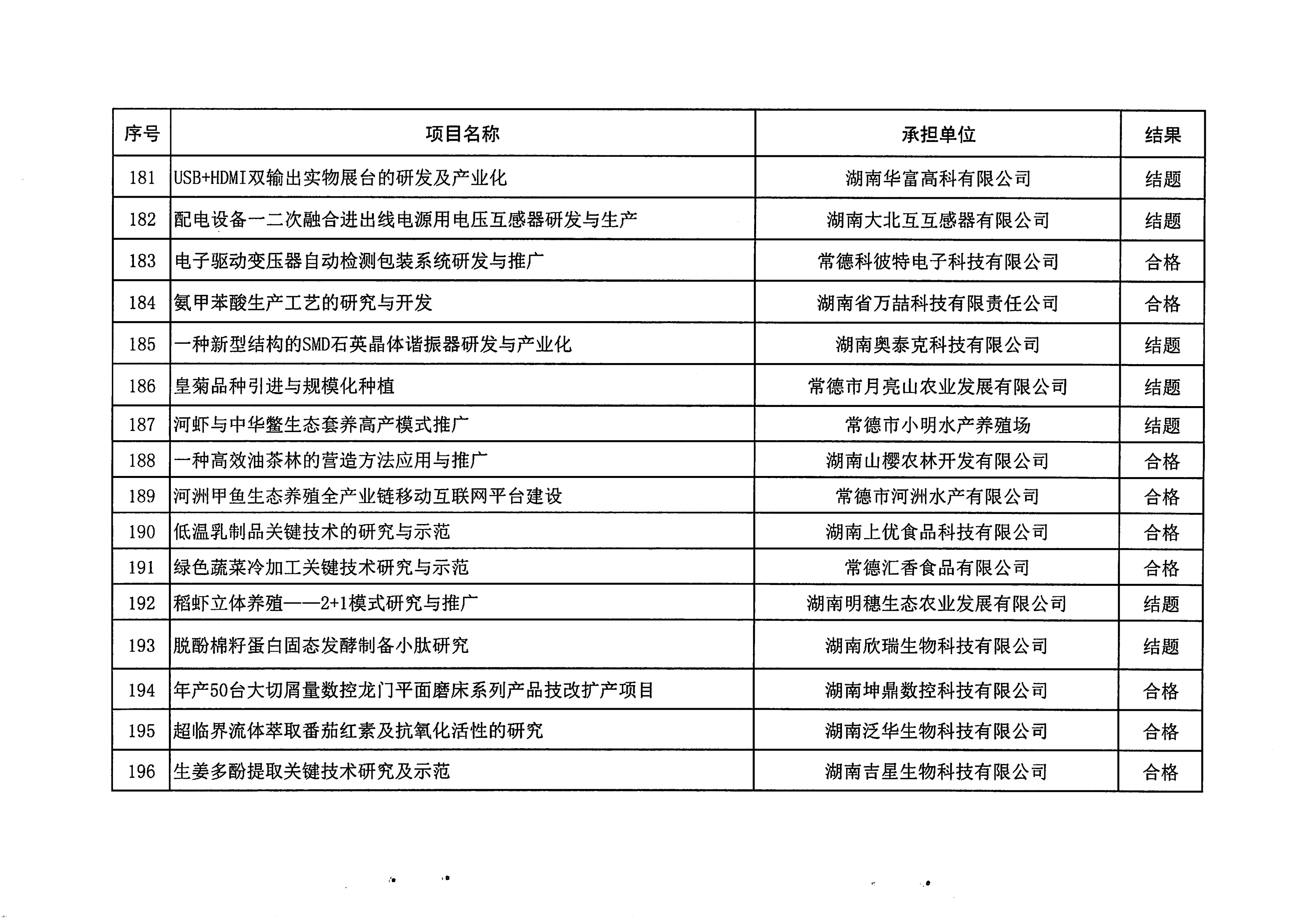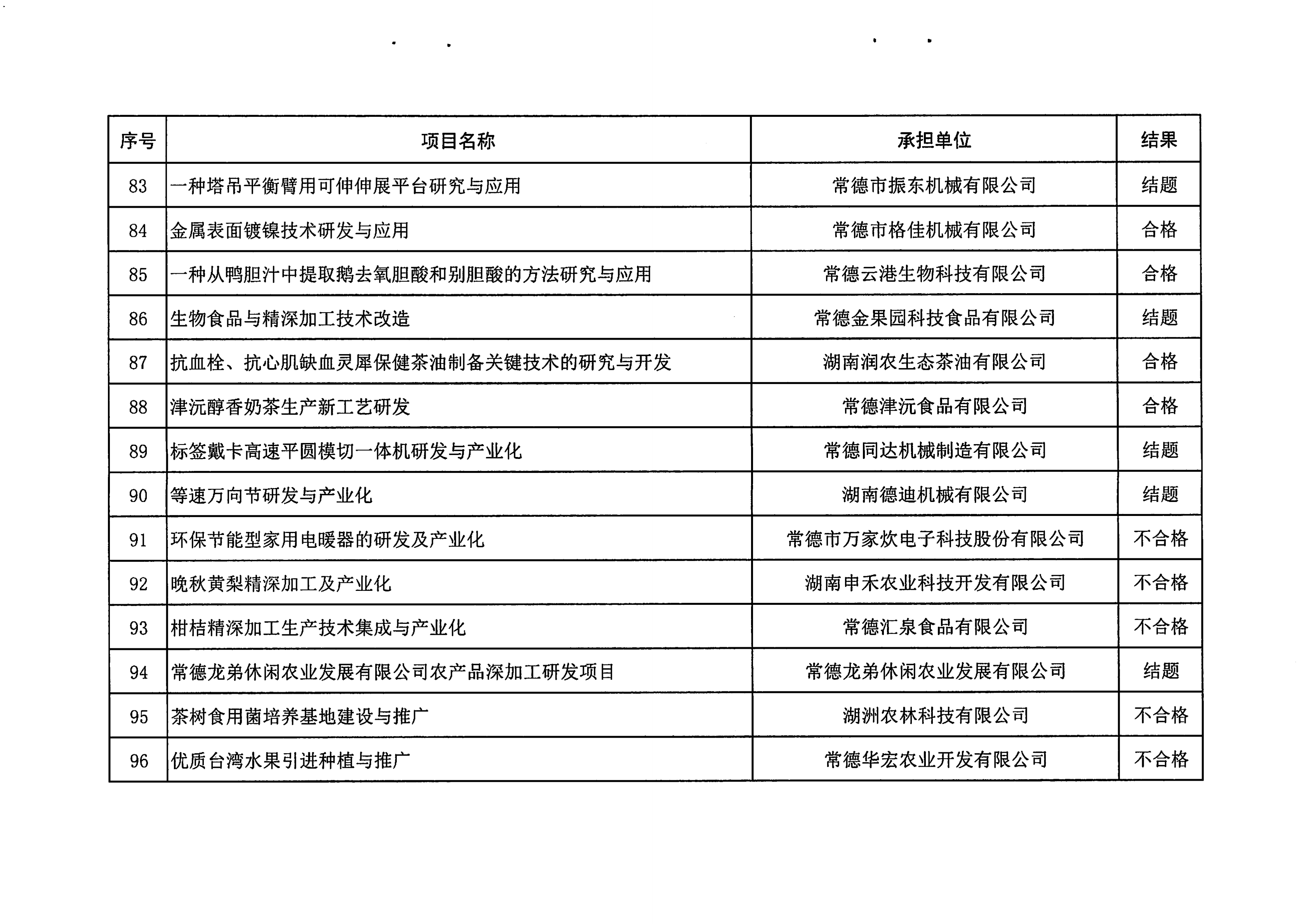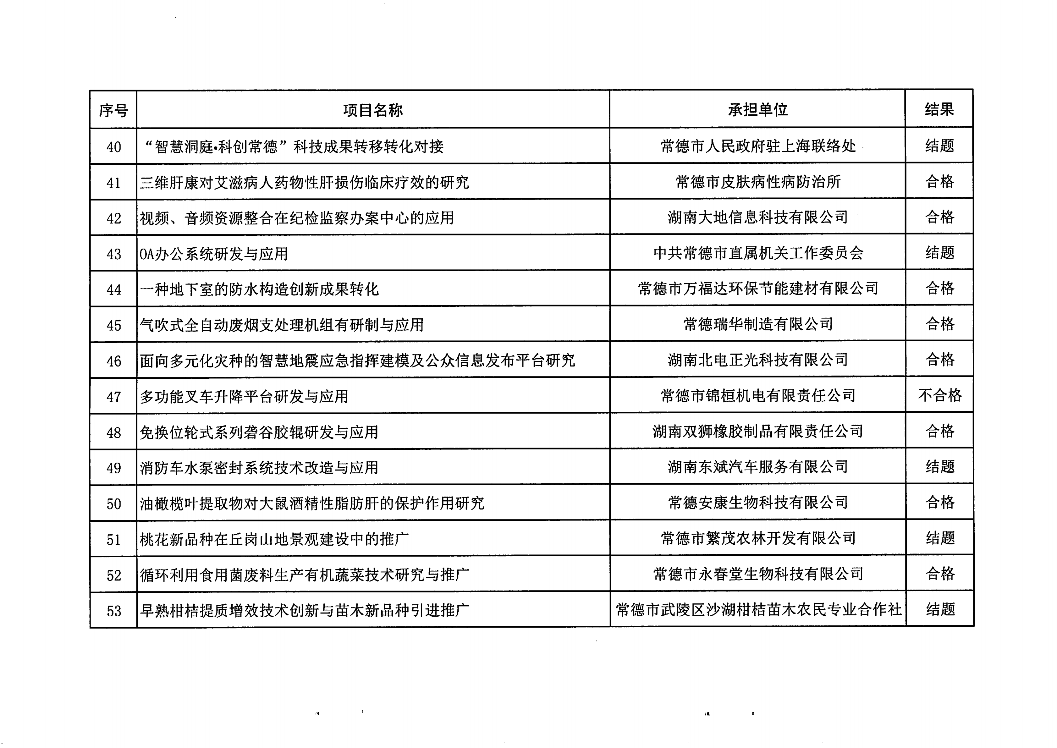 常德市科学技术局关于发布2016-2017年度科技重大项目2018年度重点及一般项目验收结果的通知