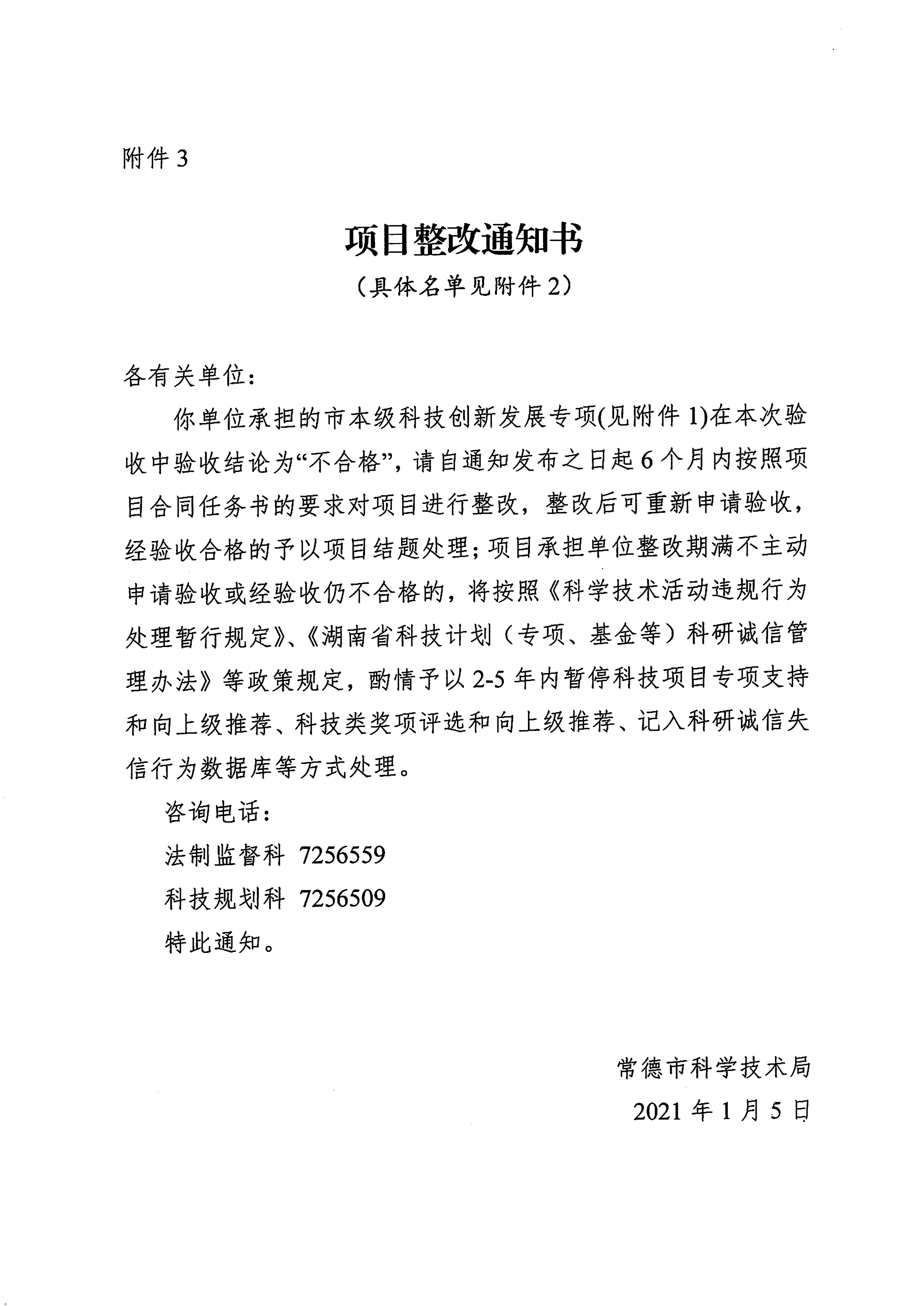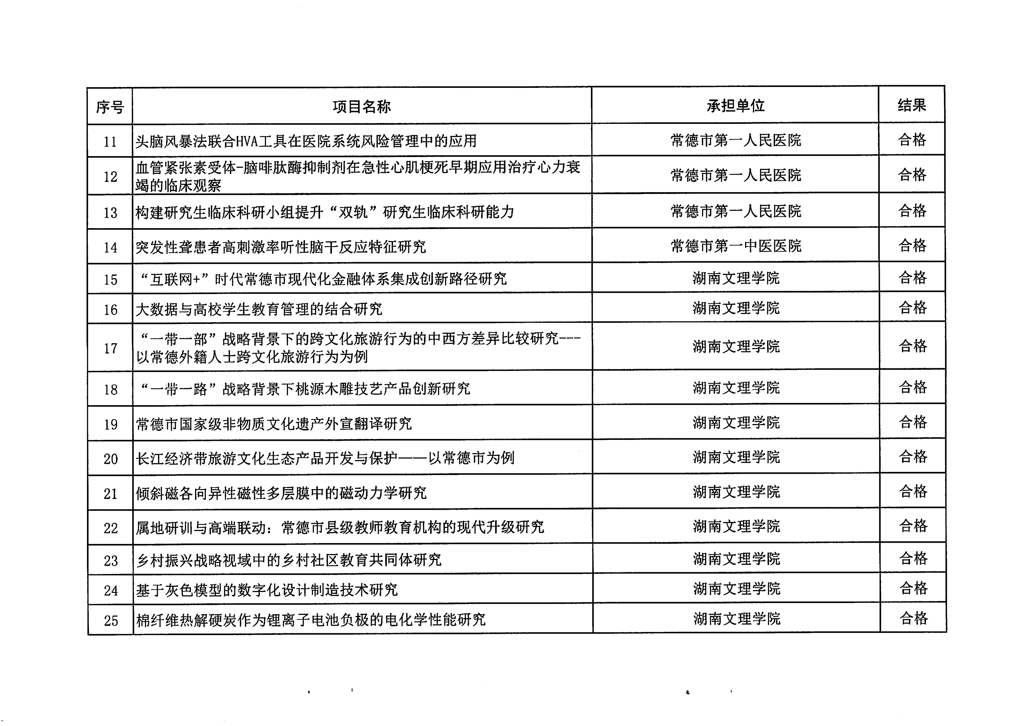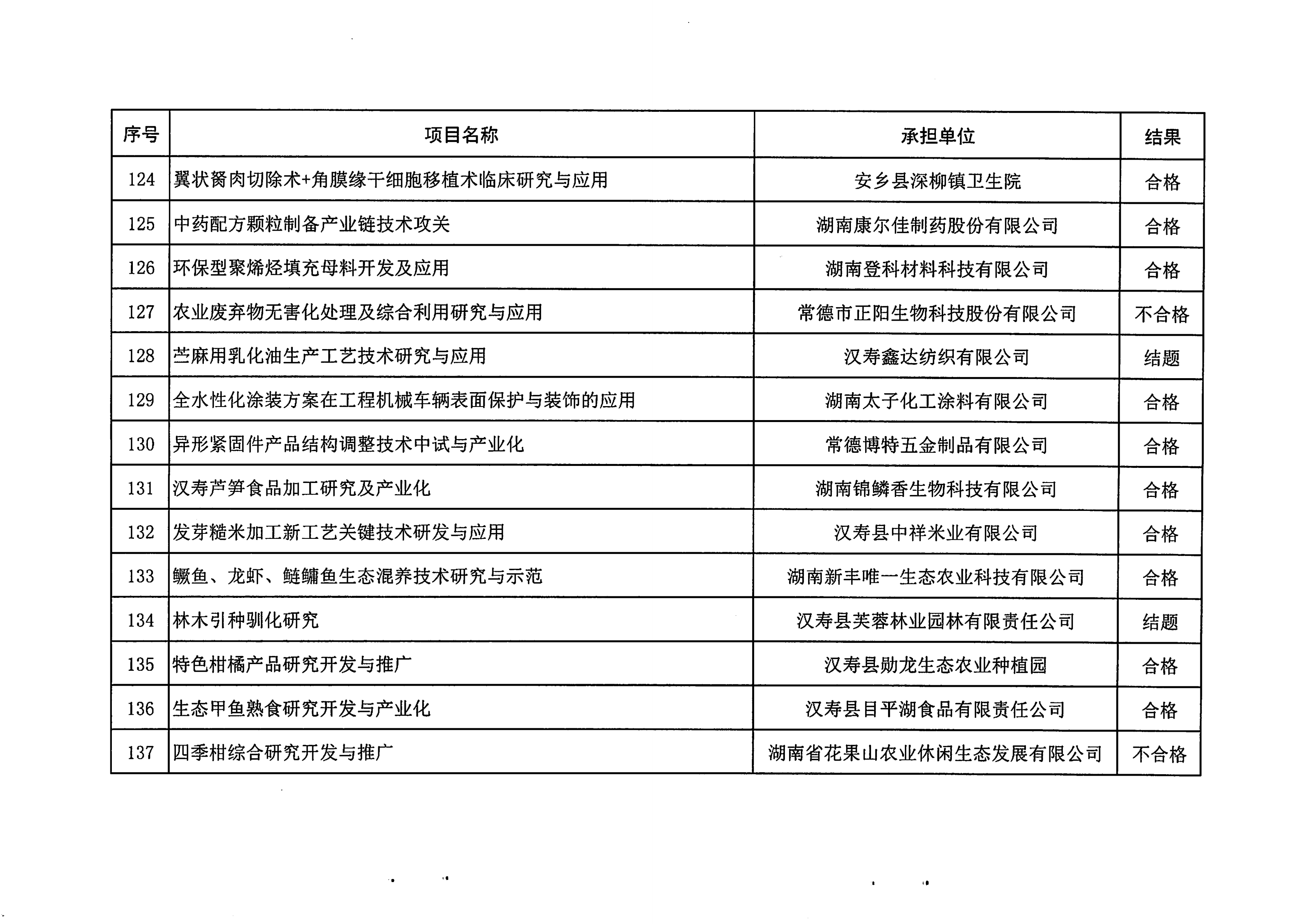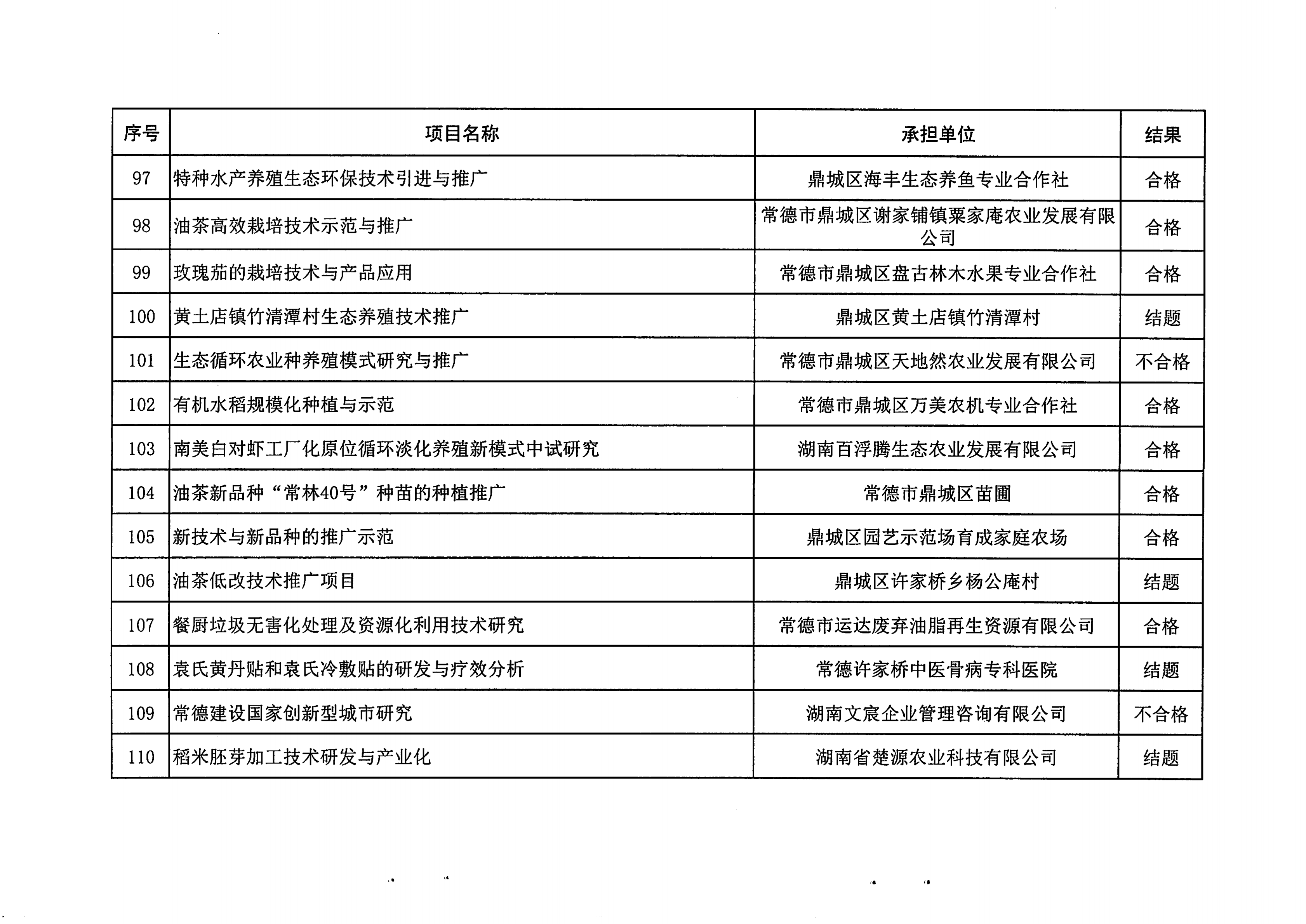常德市科学技术局关于发布2016-2017年度科技重大项目2018年度重点及一般项目验收结果的通知
