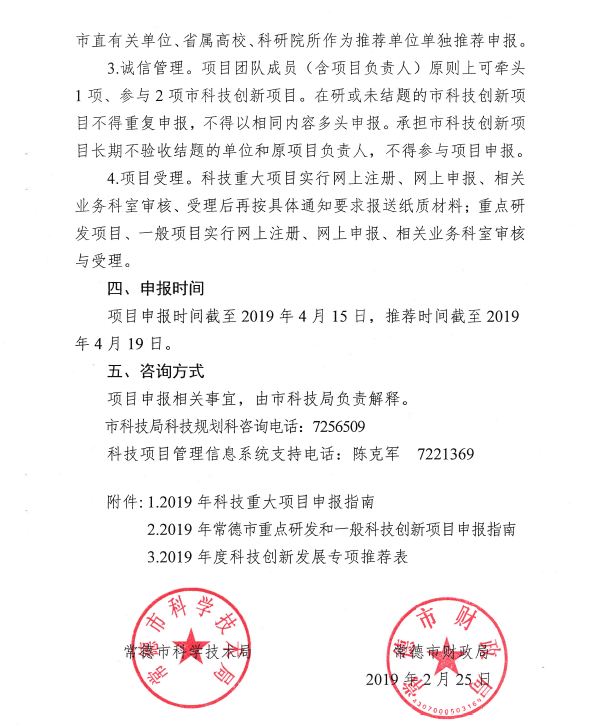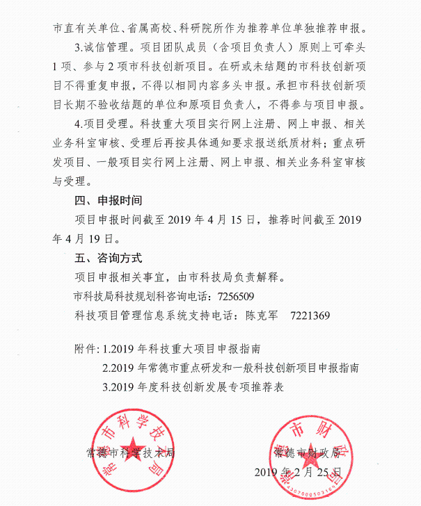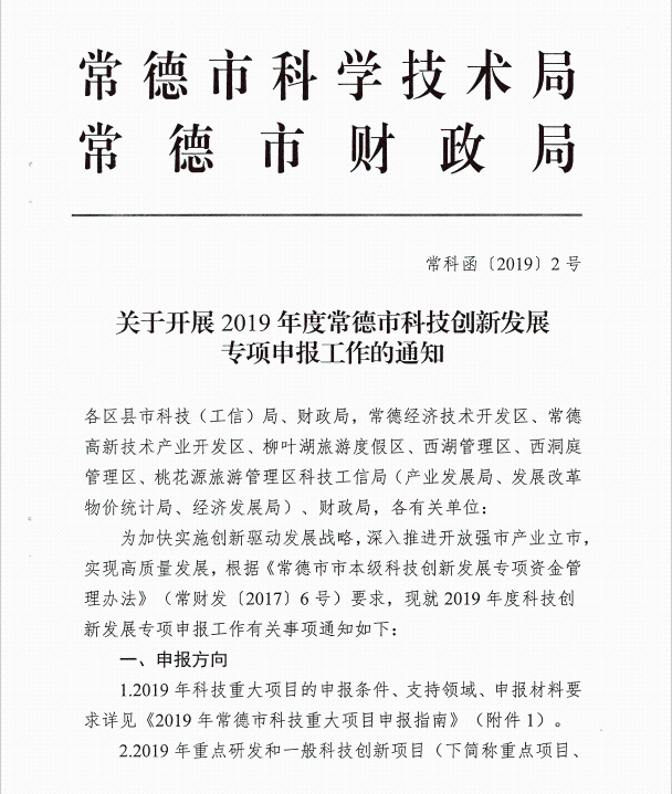 关于开展2019年度常德市科技创新发展专项申报工作的通知
