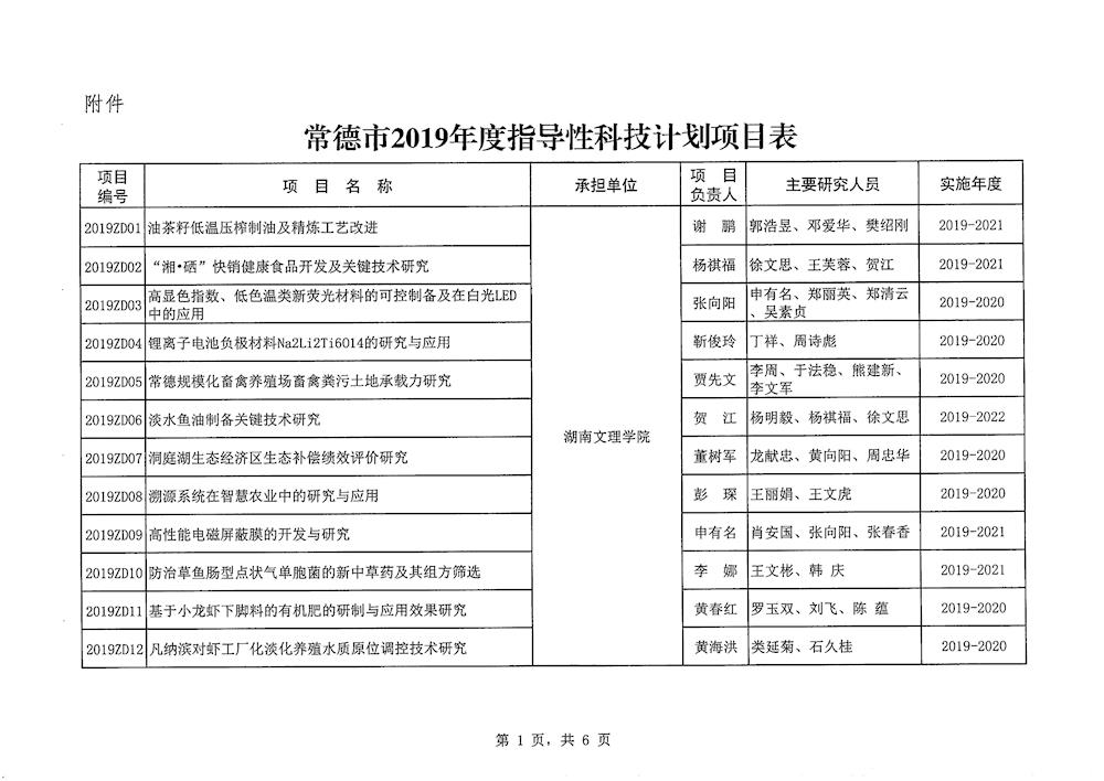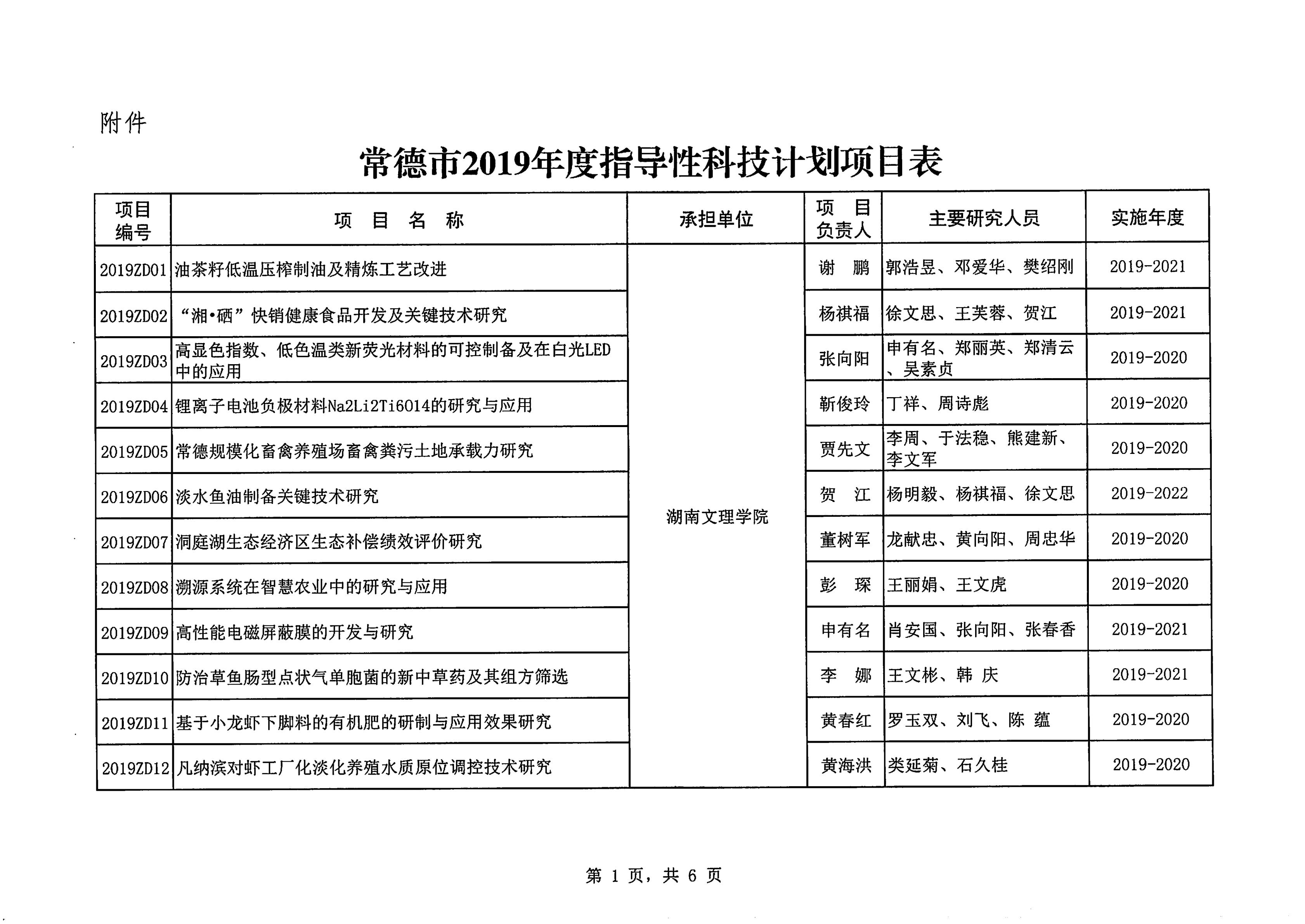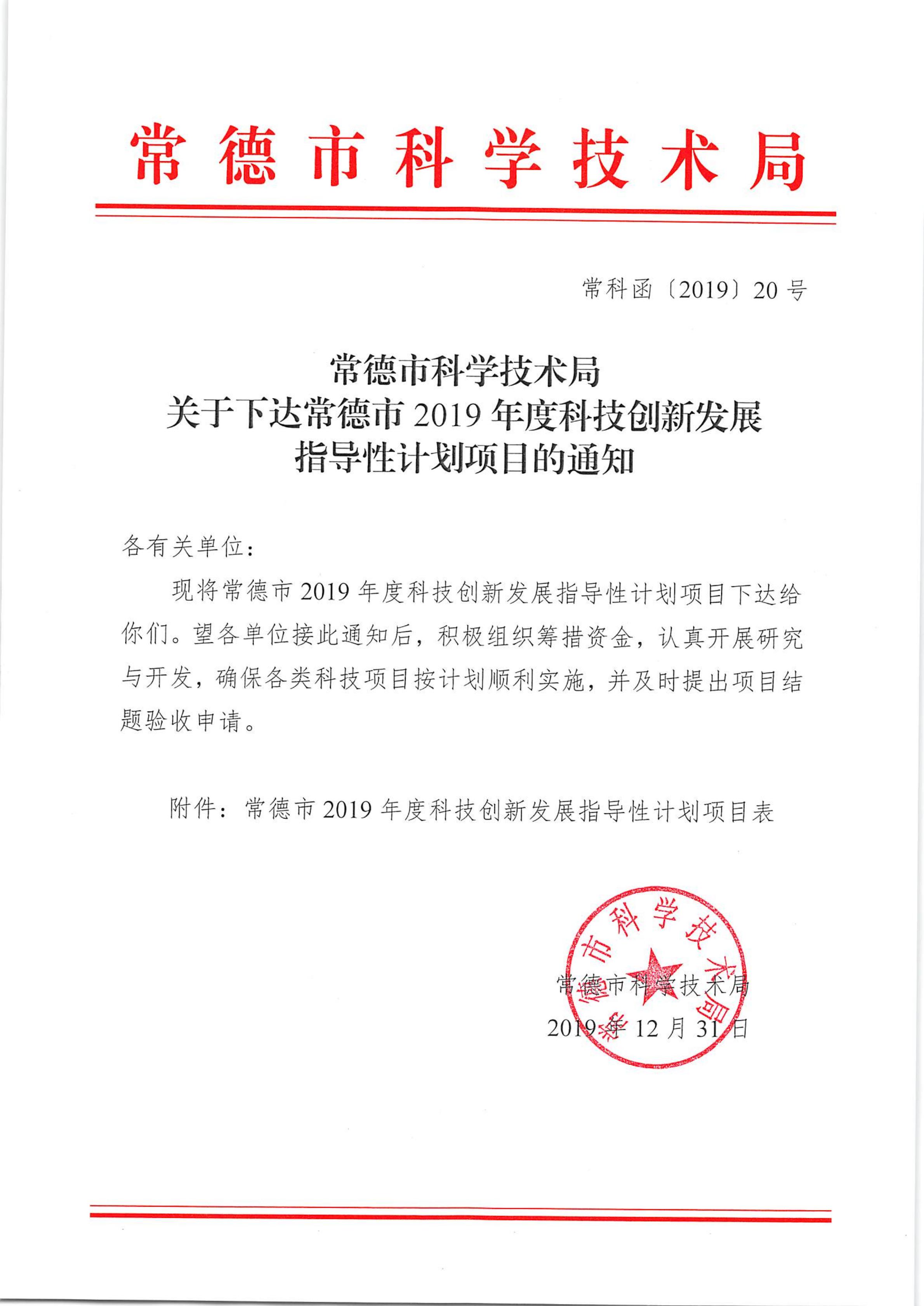 常德市科学技术局关于下达常德市2019年度科技创新发展指导性计划项目的通知