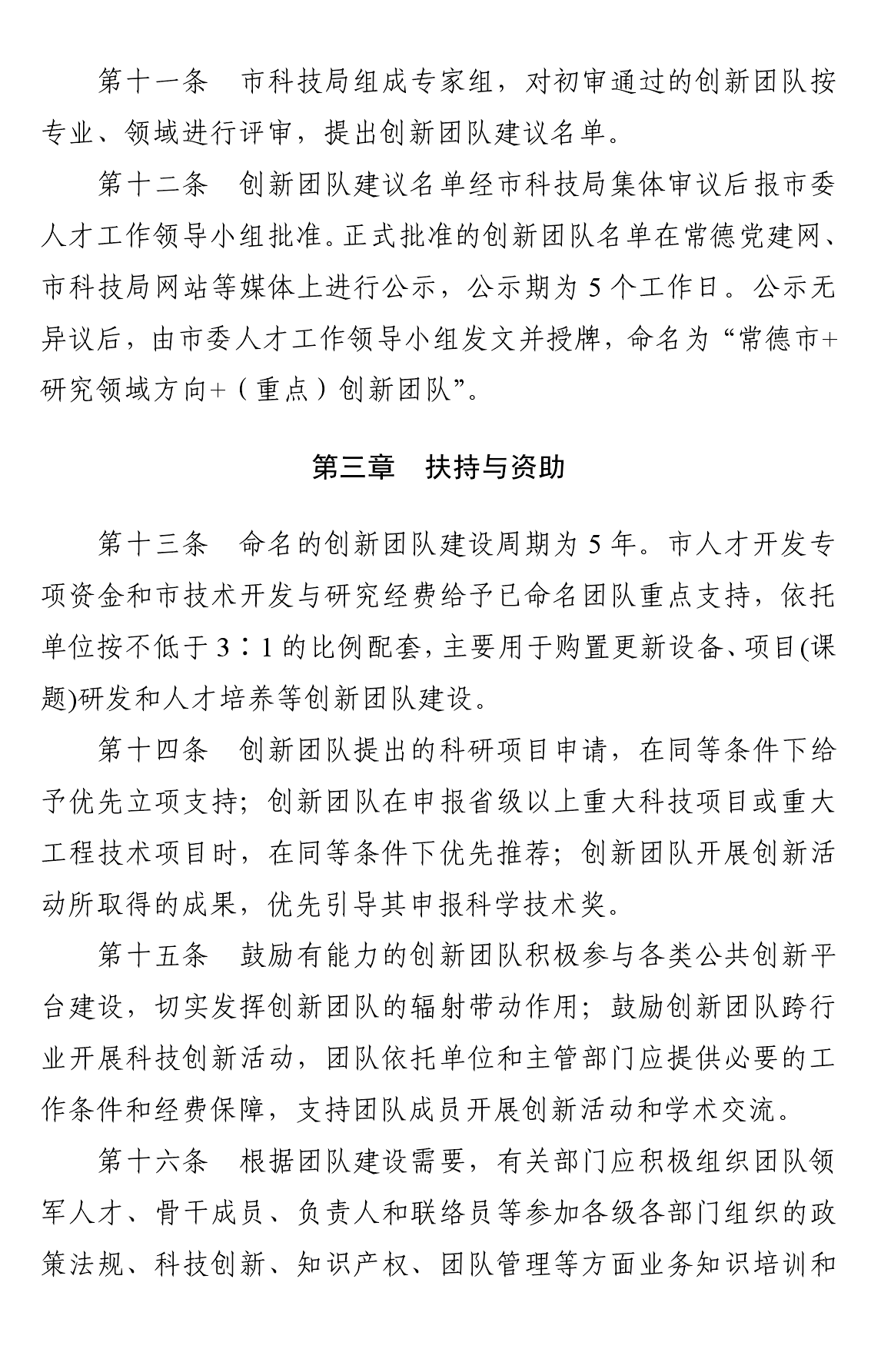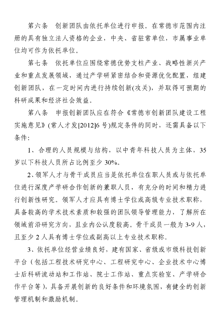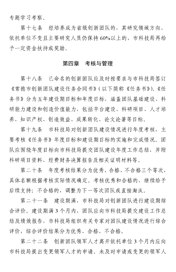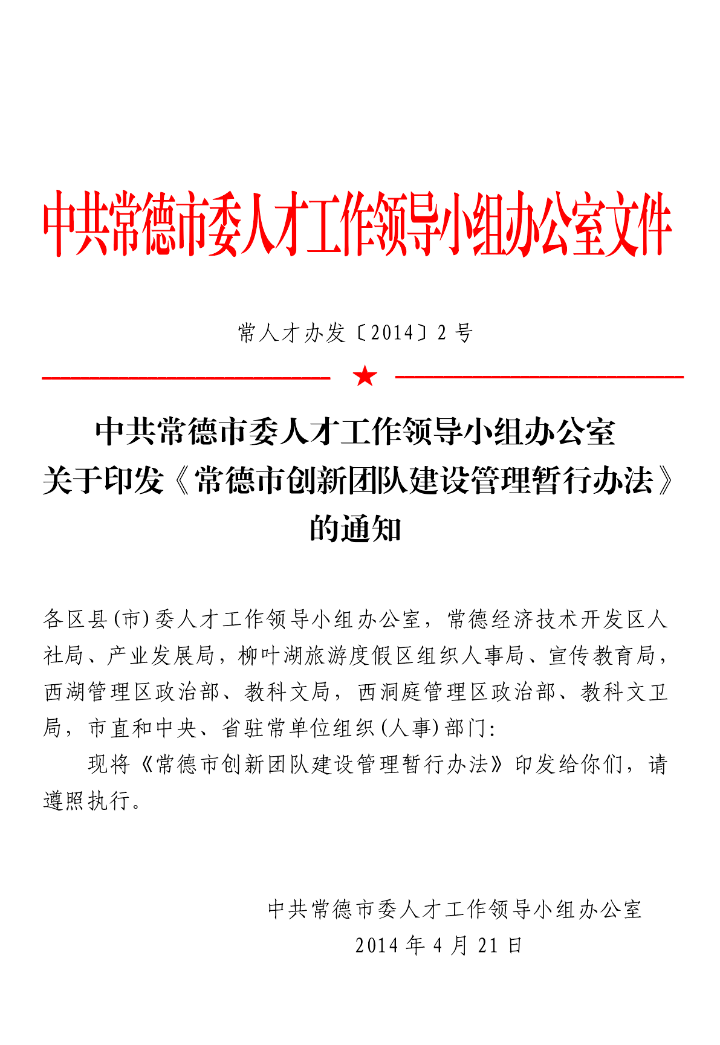常德市创新团队建设管理暂行办法