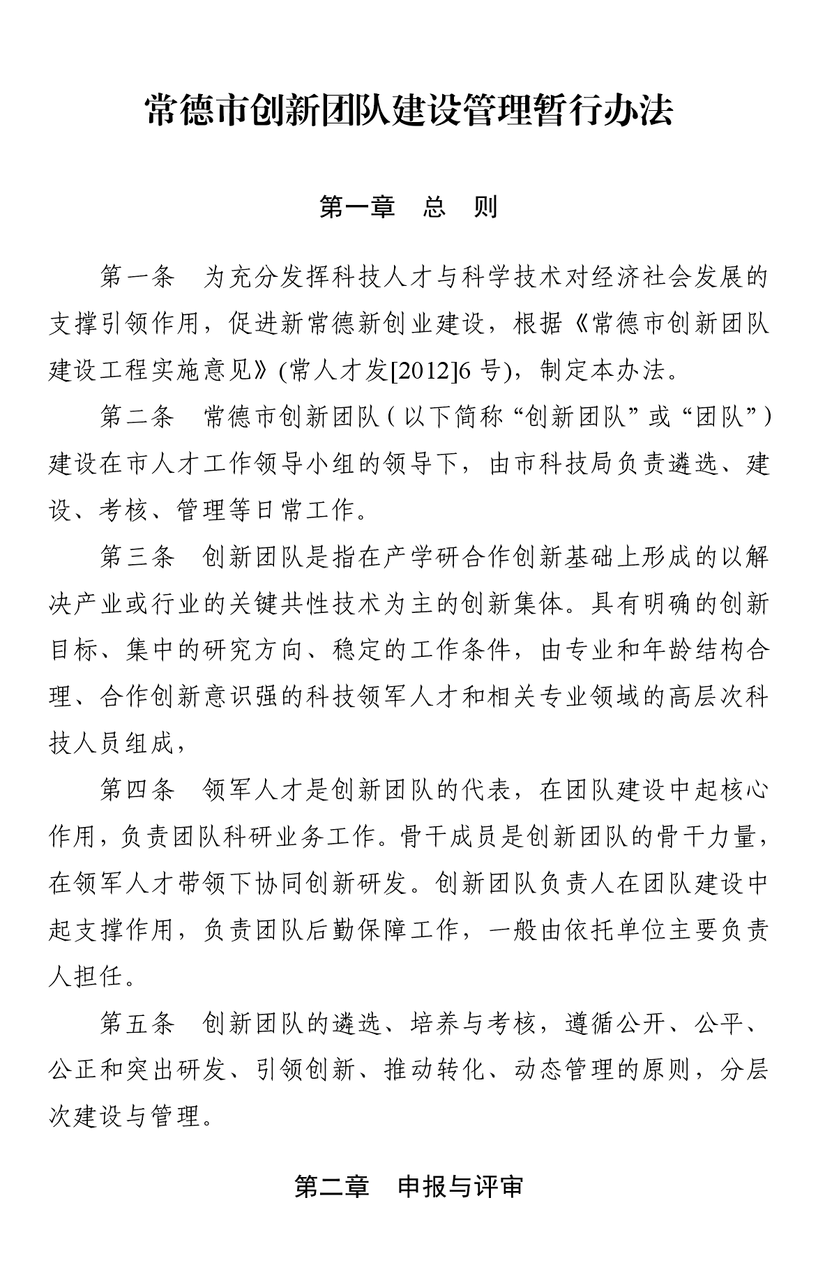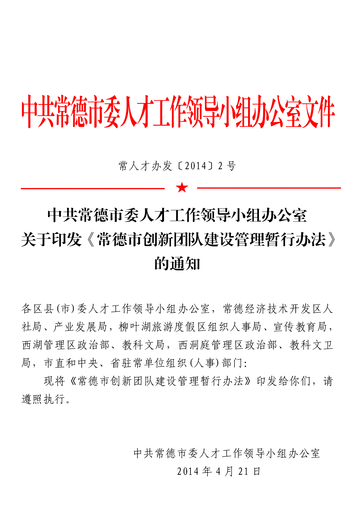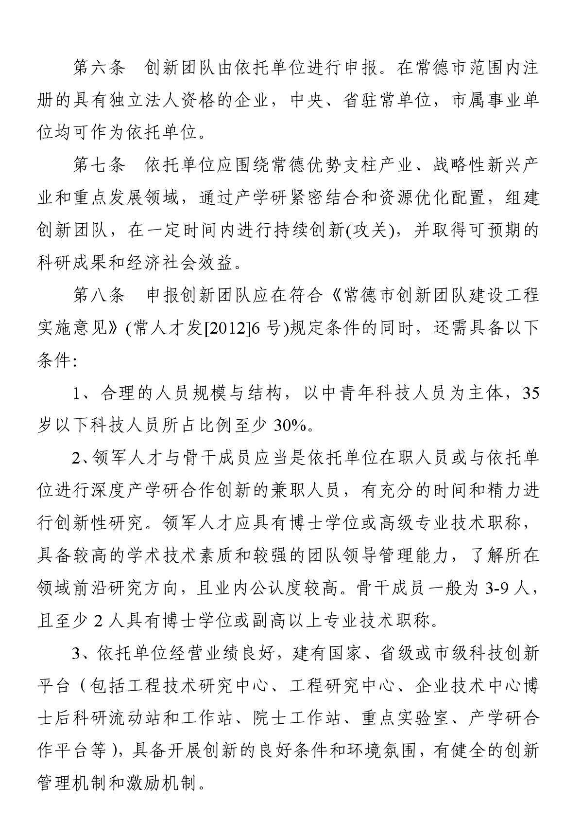 常德市创新团队建设管理暂行办法