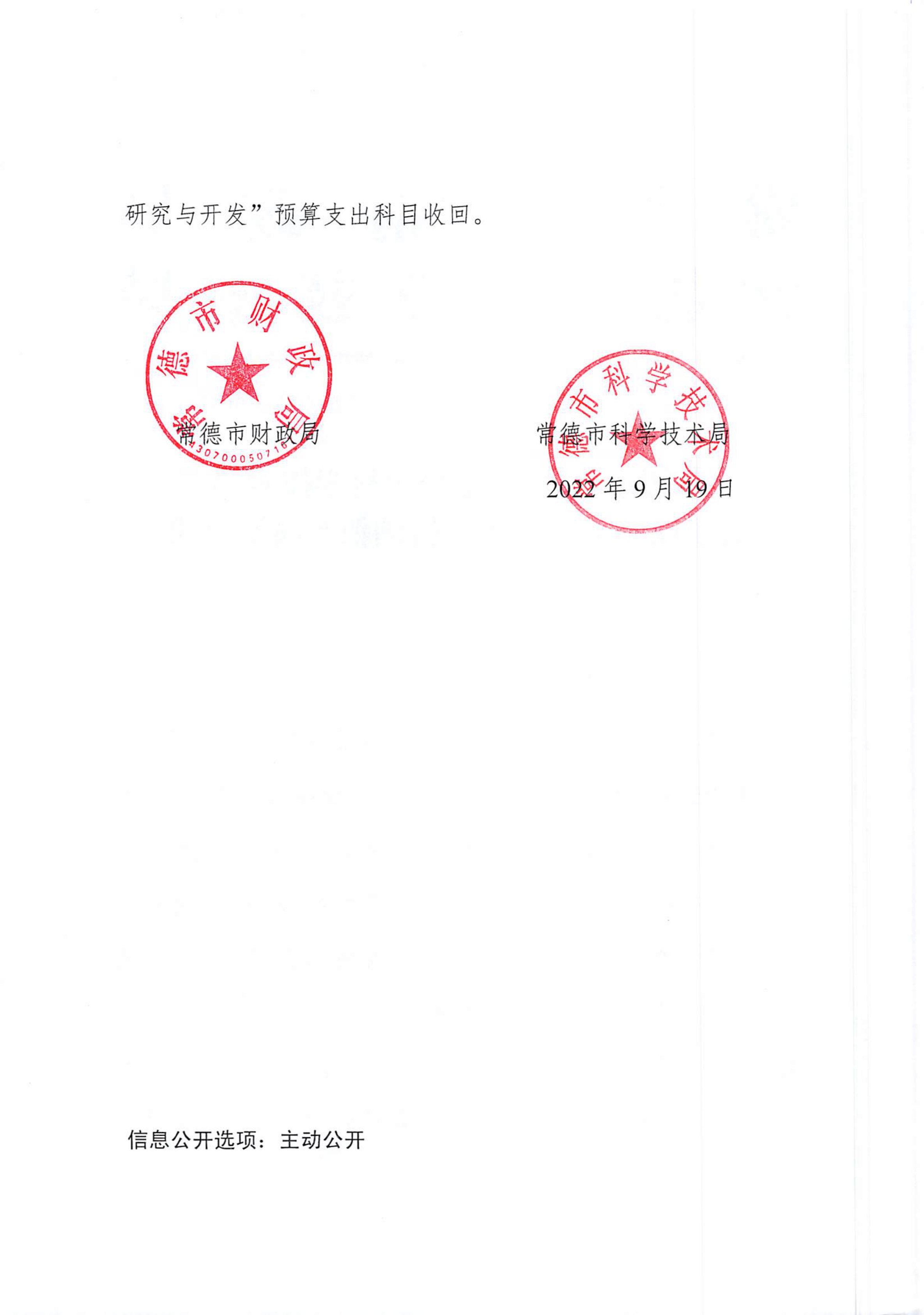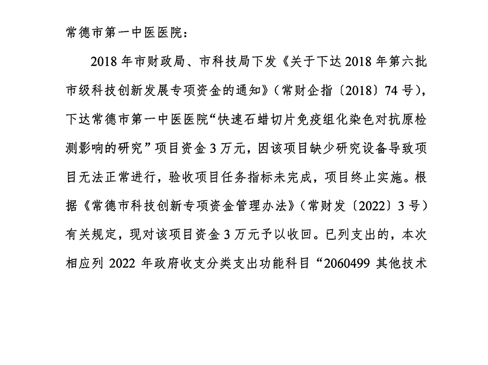 常德市财政局 常德市科学技术局关于收回部分市级科技创新专项资金的通知