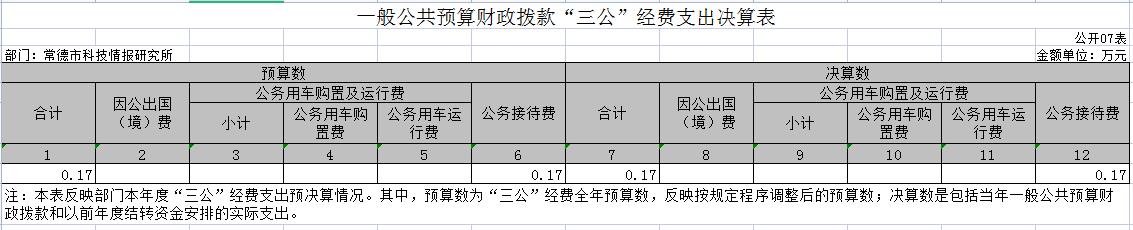 常德市科技情报研究所2021年一般公共预算“三公”经费支出情况决算表