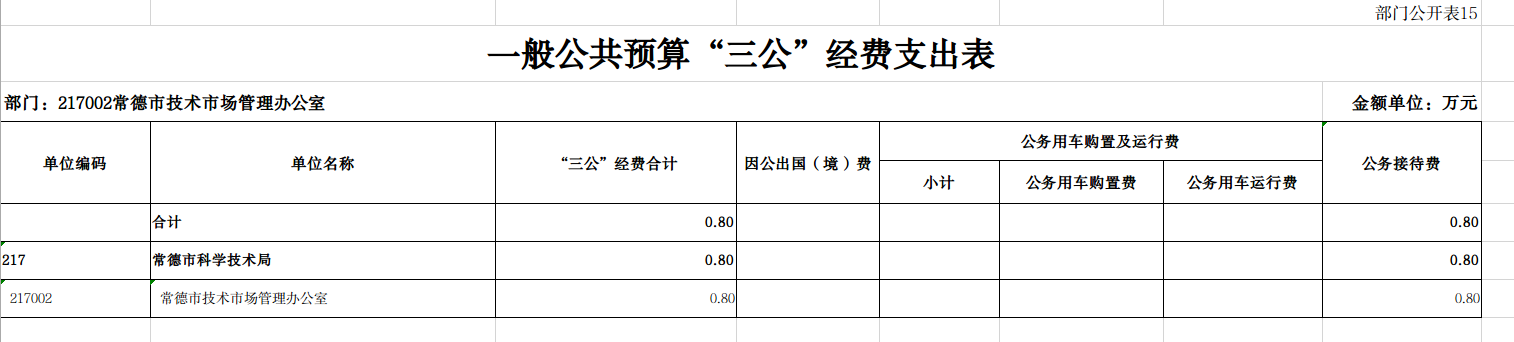 常德市技术市场管理办公室2025年一般公共预算“三公”经费支出情况表