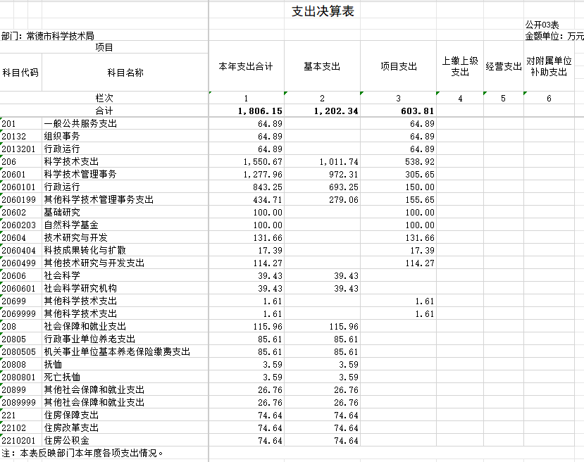 常德市科学技术局部门整体支出绩效评价报告