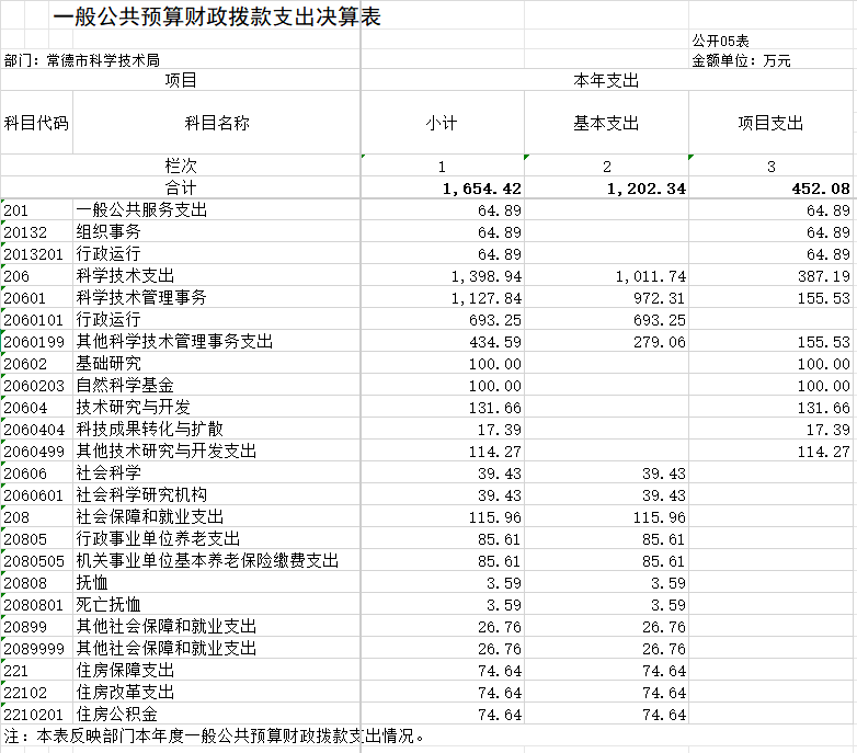 2024年度一般公共预算财政拨款支出1654.42万元,主要用于以下方面:一般公共服务(类)支出64.89万元,占3.92%;科学技术(类)支出1398.94万元,占84.56%;社会保障和就业(类)支出115.96万元,占7.01%;住房保障(类)支出74.64万元,占4.51%。