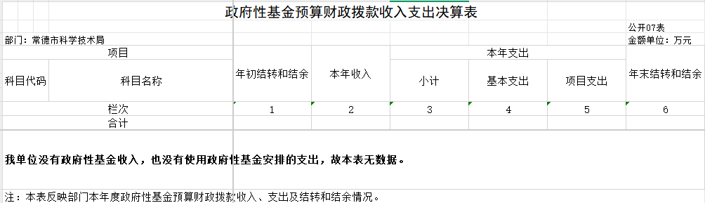 七、政府性基金预算财政拨款收入支出决算表
