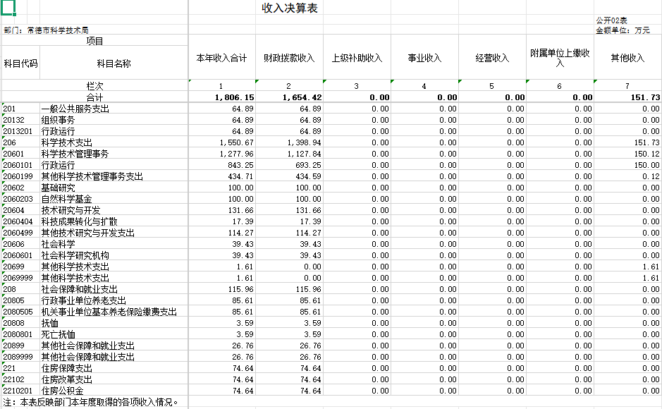 二、收入决算表
