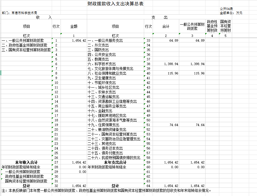 部门决算表