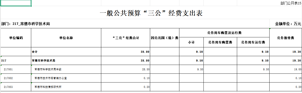 常德市科学技术局2026年“三公”经费支出情况表