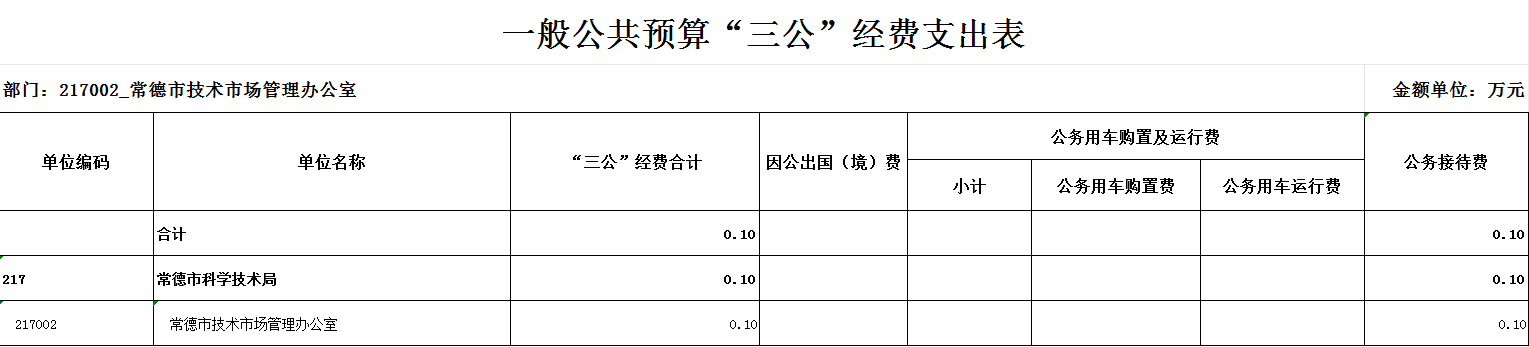 常德市技术市场管理办公室2026年“三公”经费支出情况表